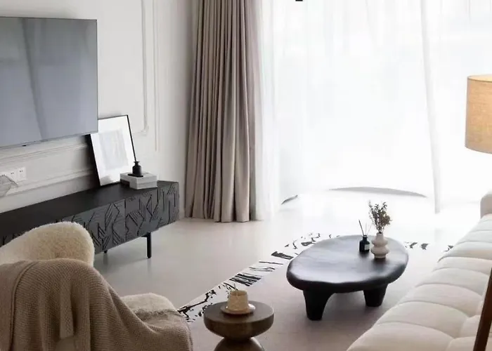 The spacious 2-bedroom Eastern Hub - Bund Branch French Chic 3-Bedroom Near Xintiandi Haiyue Garden Shanghai apartment lies 3.6 km from People's Public Square and approximately 10 minutes' walk from Luban Road tube station. Providing a hot tub, the apartment is situated just near World Expo Museum.